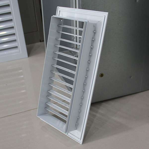 單層可調百葉風口常用于管道中的吸、送風用,同時可根據實際情況配上人字閘(多葉對開調節閥),用以控制風量或安裝過濾器,進行配套使用。葉片可分為橫放和豎放兩種,可靈活的左右或者上下轉動,以控制氣流方向。單層百葉風口的風口氣流調節方向是一維的,不是水平左右就是垂直上下這兩個方向之一,但雙層百葉風口的風口氣流調節方向是二維的,具有水平左右和垂直上下兩個方向。