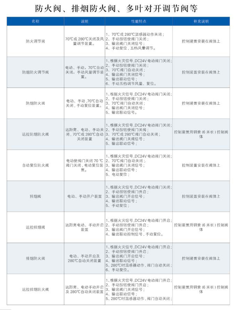 防火閥是一種記憶熔合金的溫度控制,利用重力作用和彈簧機構的作用關閉的閥門形式。新型產品中亦有利用記憶合金產生形變使閥門關閉的。 它的作用是:當煙氣溫度達到280℃時,人已基本疏散完畢,排煙已無實際意義,而煙氣中此時已帶火,閥門自動關閉,以避免火勢蔓延。